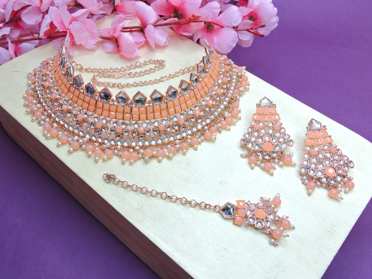 Product Details: 1 Necklace::1 Pair of Earring::1 Maang Tikka