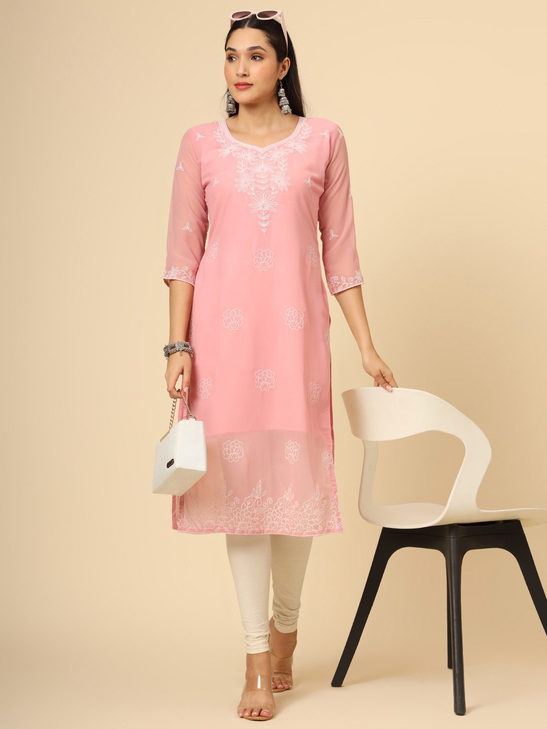 Gorgeous Georgette Pink Readymade Kurti