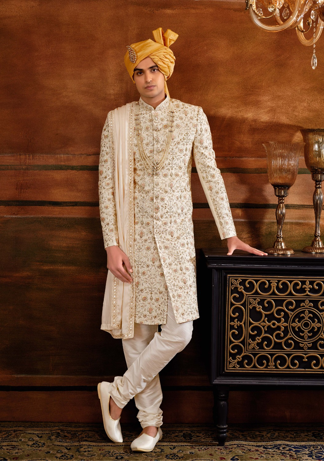 Picture of Graceful Art Silk Cream Wedding Sherwani