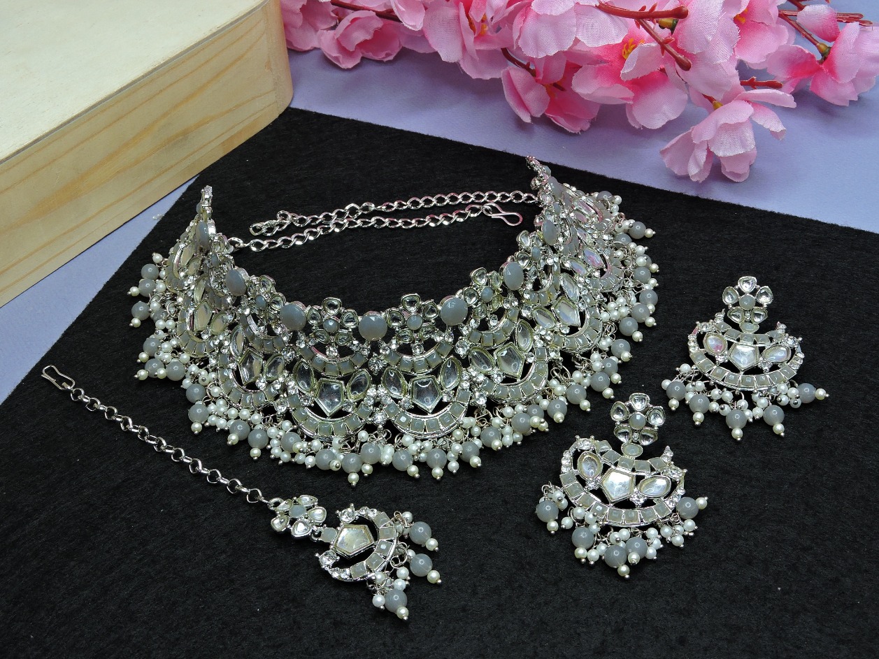 Product Details: 1 Necklace::1 Pair of Earring::1 Maang Tikka