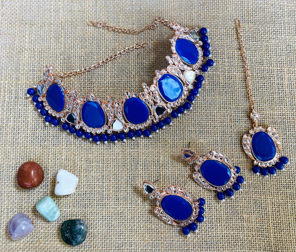 Product Details: 1 Necklace::1 Pair of Earring::1 Maang Tikka