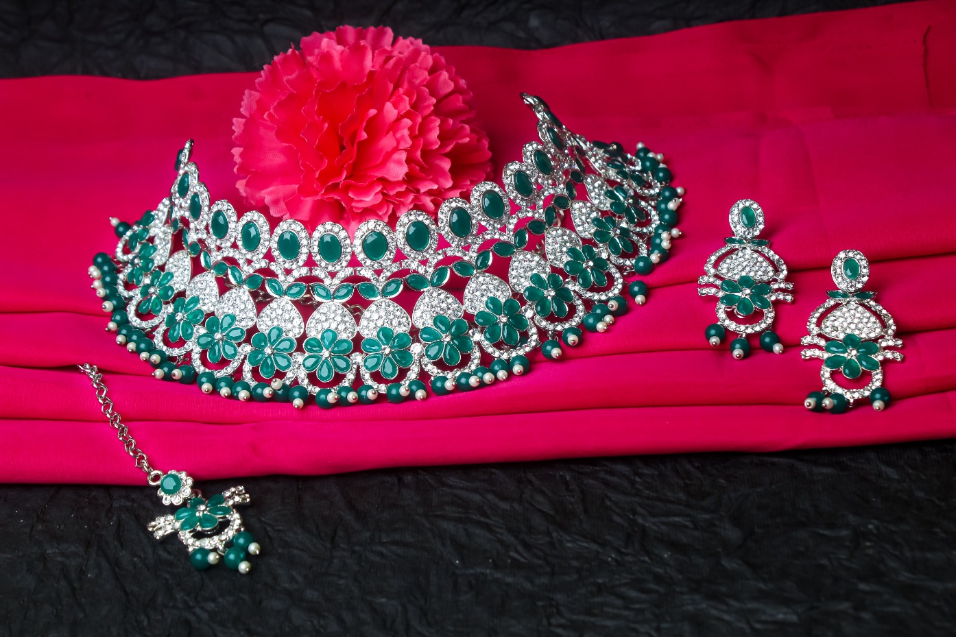 Product Details: 1 Necklace::1 Pair of Earring::1 Maang Tikka