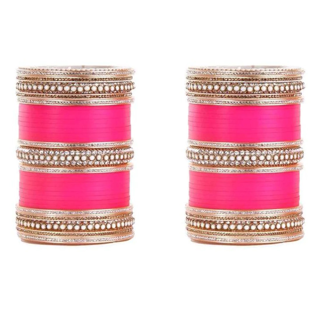Lovely Lac, Pearl and Plastic Pink Bangle Set
