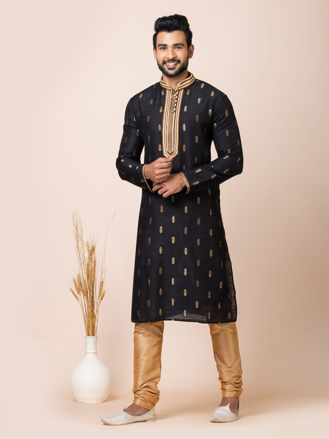 Magnificent Cotton Jacquard Silk Black Kurta Pajama