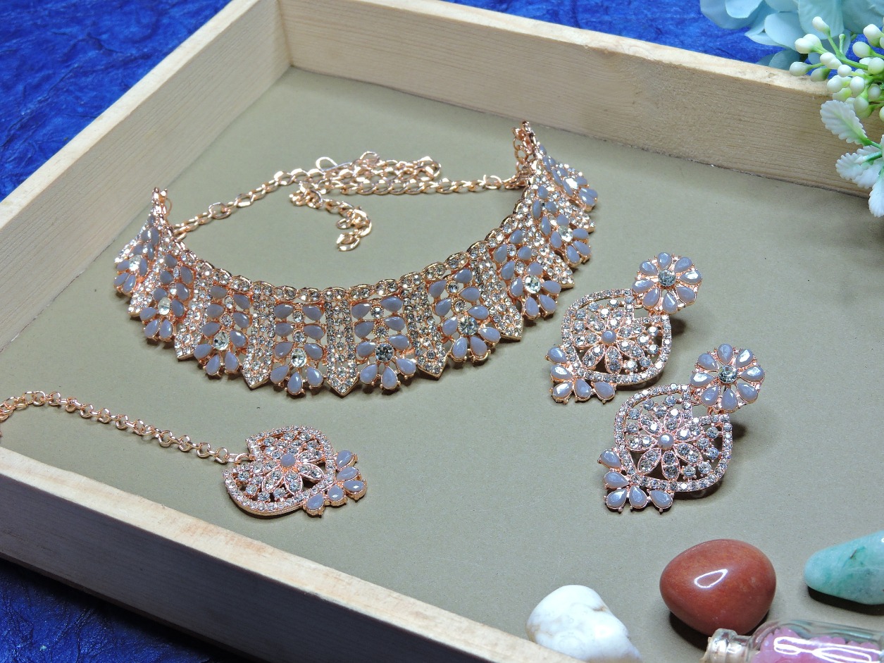 Product Details: 1 Necklace::1 Pair of Earring::1 Maang Tikka