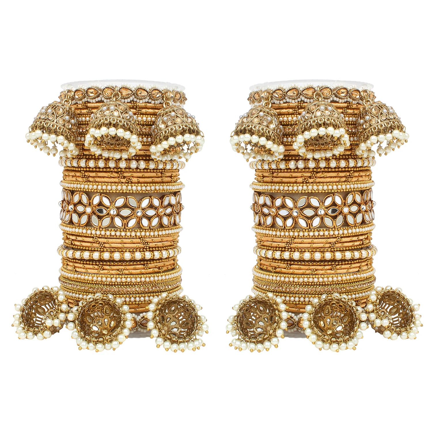 Traditional Jhumki Bangle Set With Thread Bangles & Mirror Kada