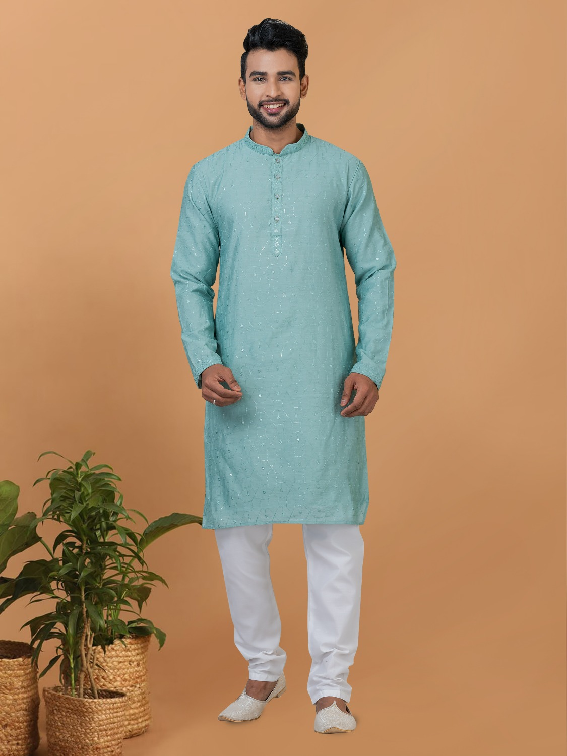 Magnificent Viscose Cotton Blue Kurta Pajama