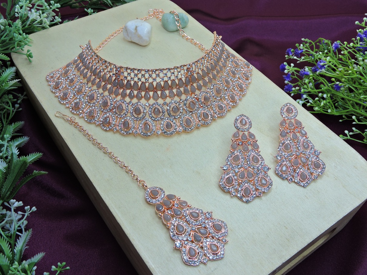 Product Details: 1 Necklace::1 Pair of Earring::1 Maang Tikka
