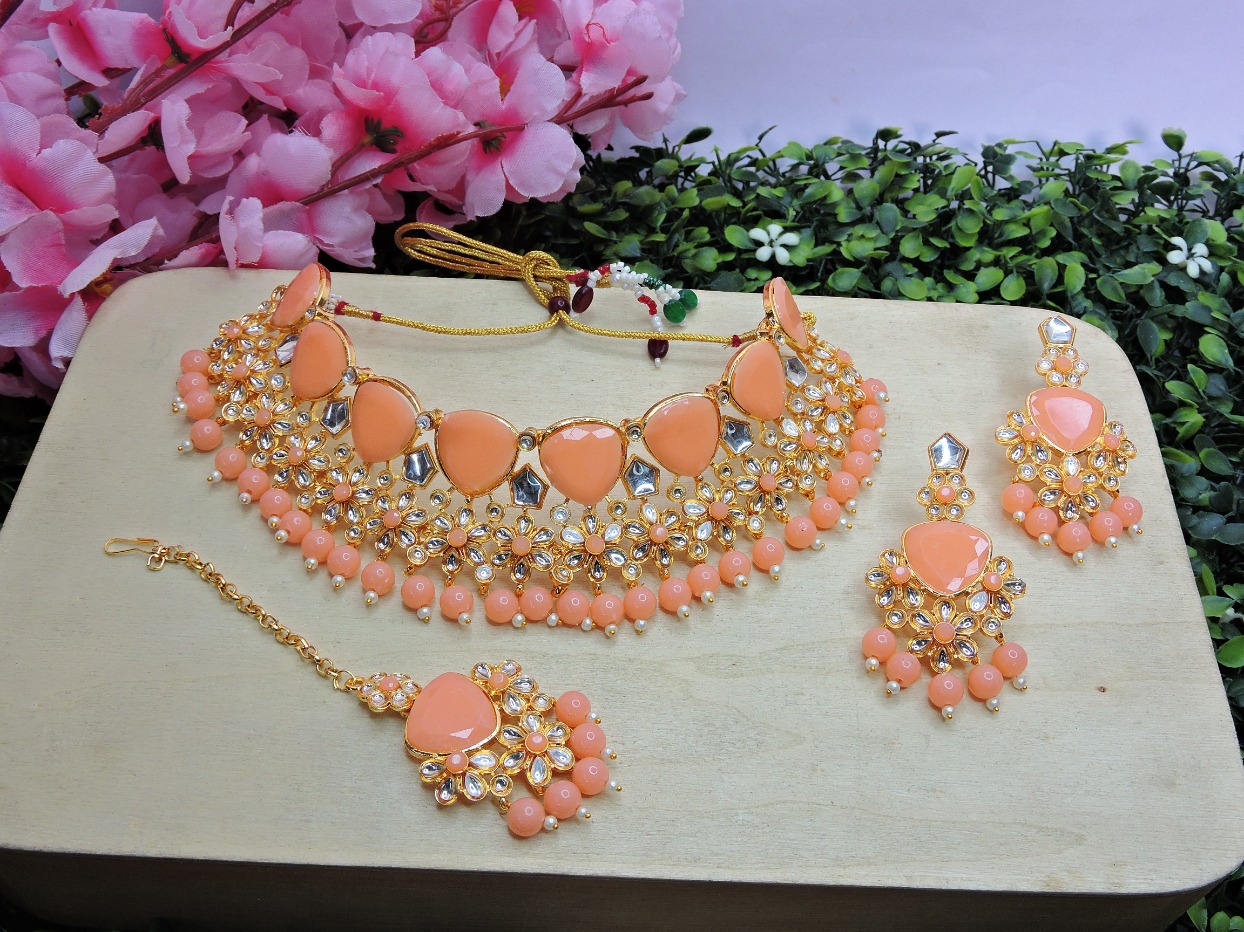 Product Details: 1 Necklace::1 Pair of Earring::1 Maang Tikka