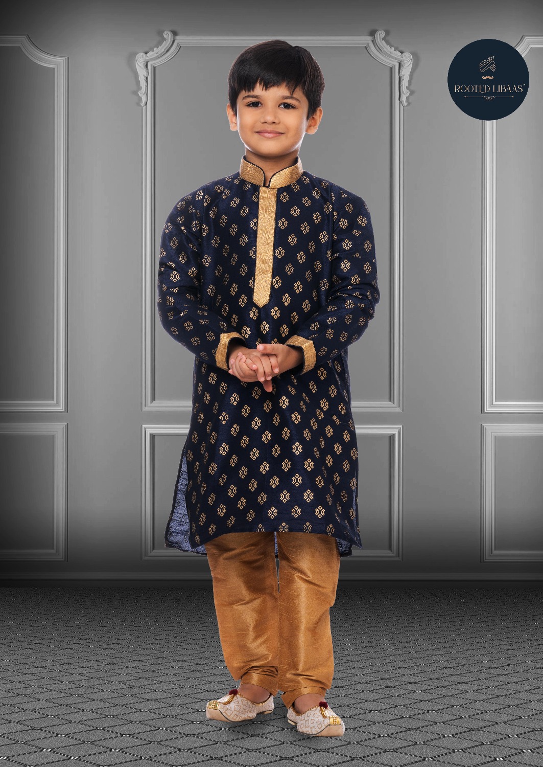 Marvelous Printed Dhupion Silk Navy Blue Kurta Pajama