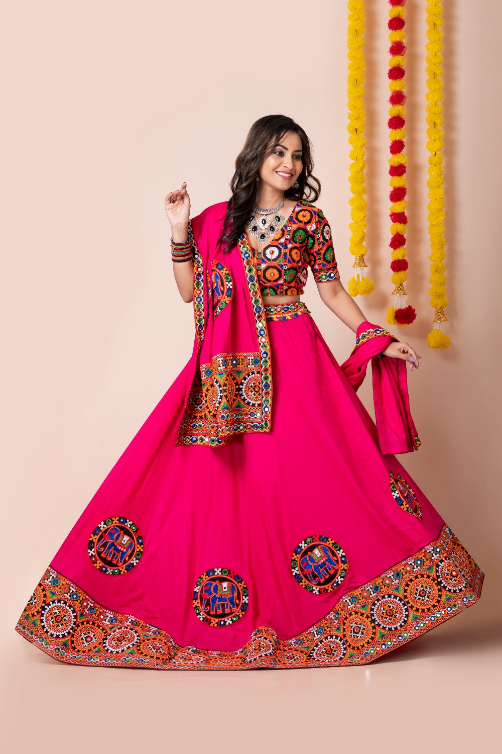 Navratri Special Classy Designer Heavy Rayon Pink Lehenga Choli