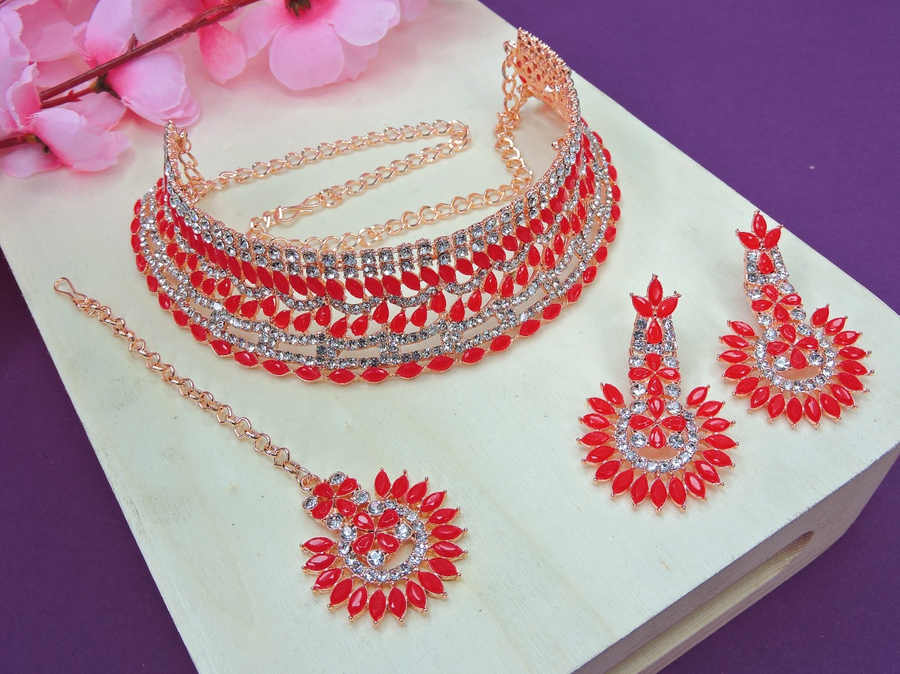 Product Details: 1 Necklace::1 Pair of Earring::1 Maang Tikka