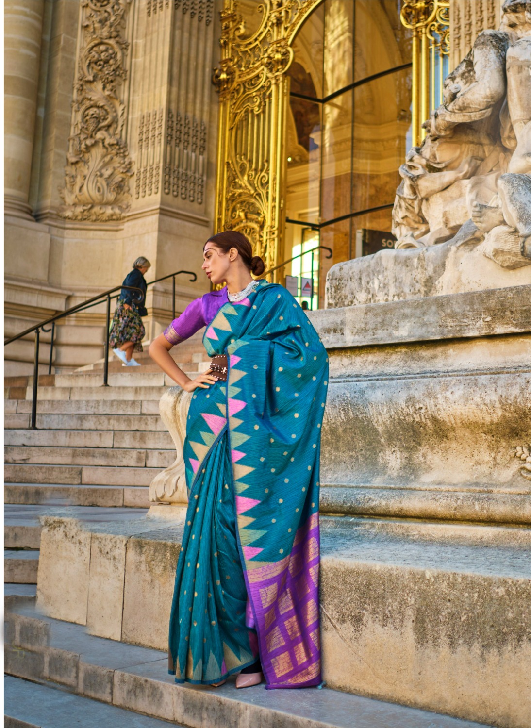 Nice Handloom Weaving Khadi Silk Teal Saree