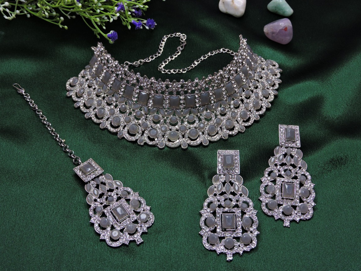 Product Details: 1 Necklace::1 Pair of Earring::1 Maang Tikka