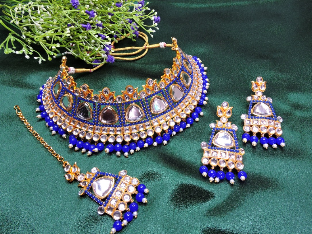 Product Details: 1 Necklace::1 Pair of Earring::1 Maang Tikka