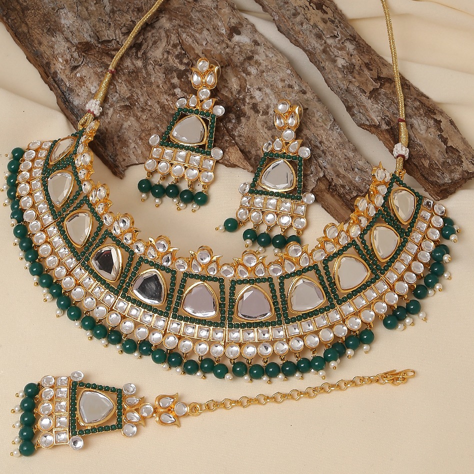 Product Details: 1 Necklace::1 Pair of Earring::1 Maang Tikka