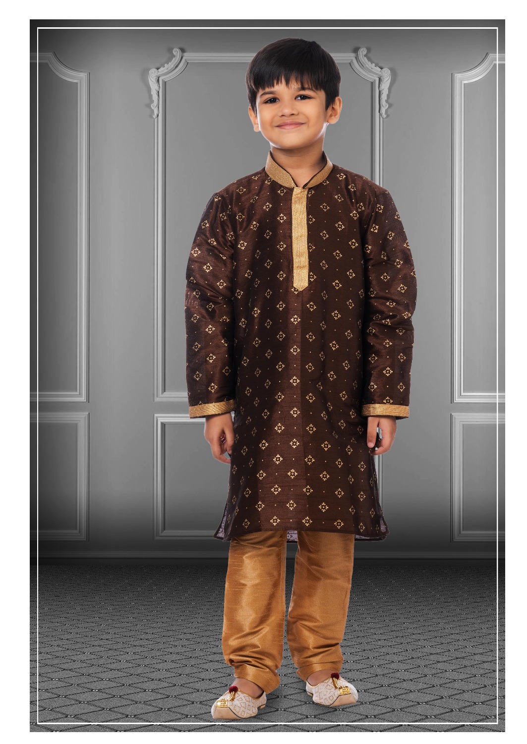 Pretty Printed Dhupion Silk Brown Kurta Pajama