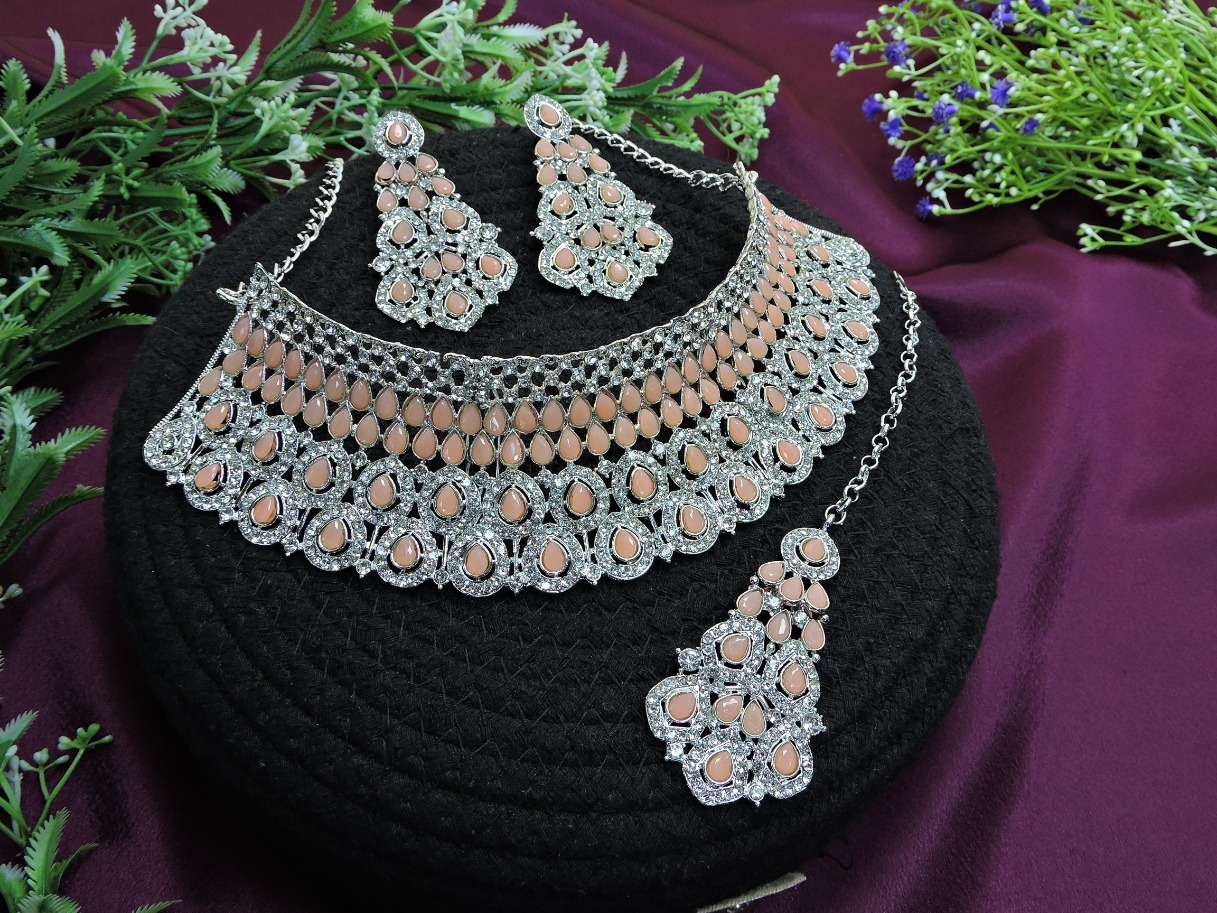 Product Details: 1 Necklace::1 Pair of Earring::1 Maang Tikka