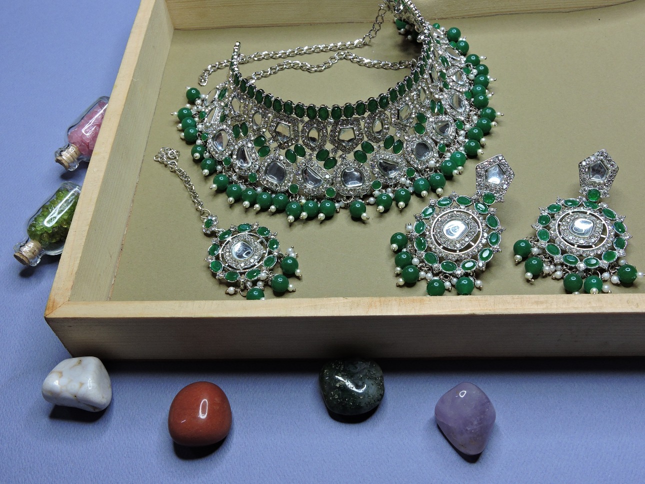 Product Details: 1 Necklace::1 Pair of Earring::1 Maang Tikka