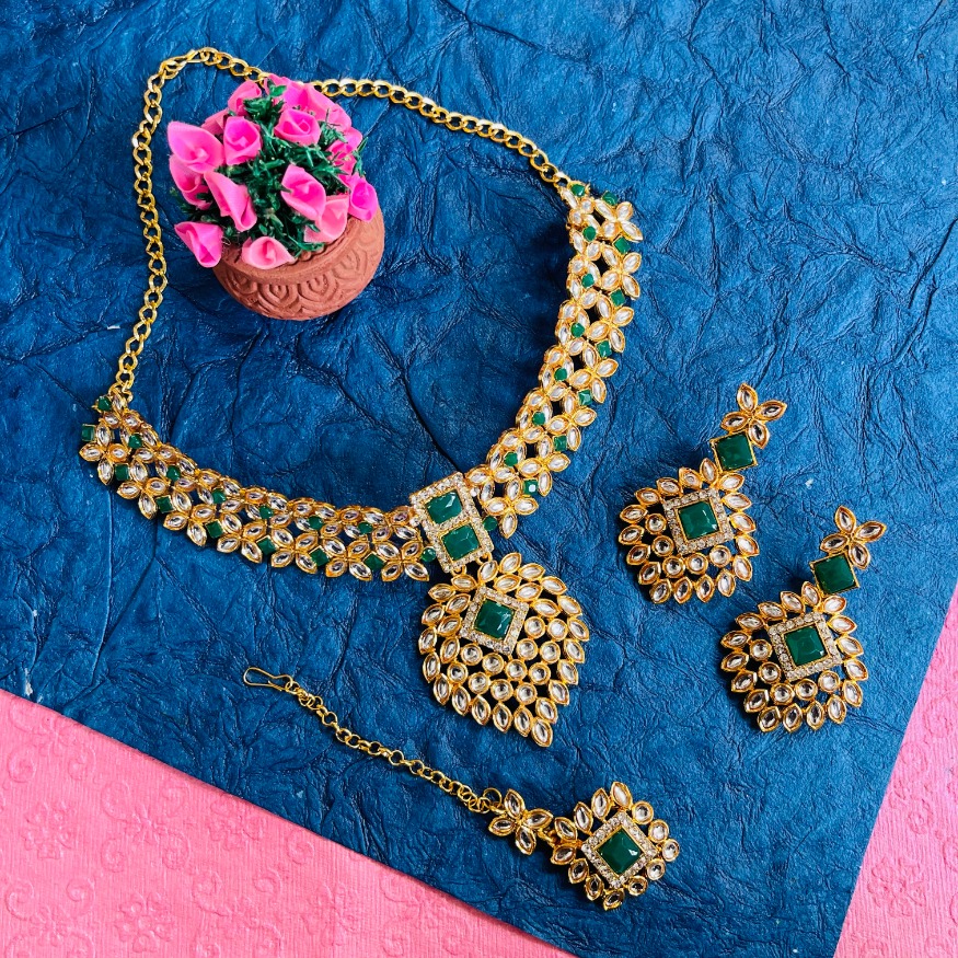 Product Details: 1 Necklace::1 Pair of Earring::1 Maang Tikka