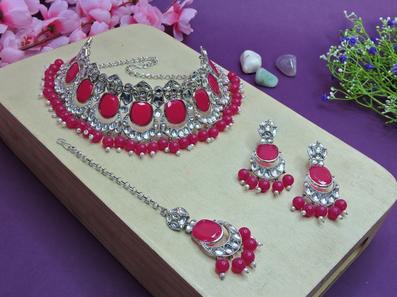 Product Details: 1 Necklace::1 Pair of Earring::1 Maang Tikka
