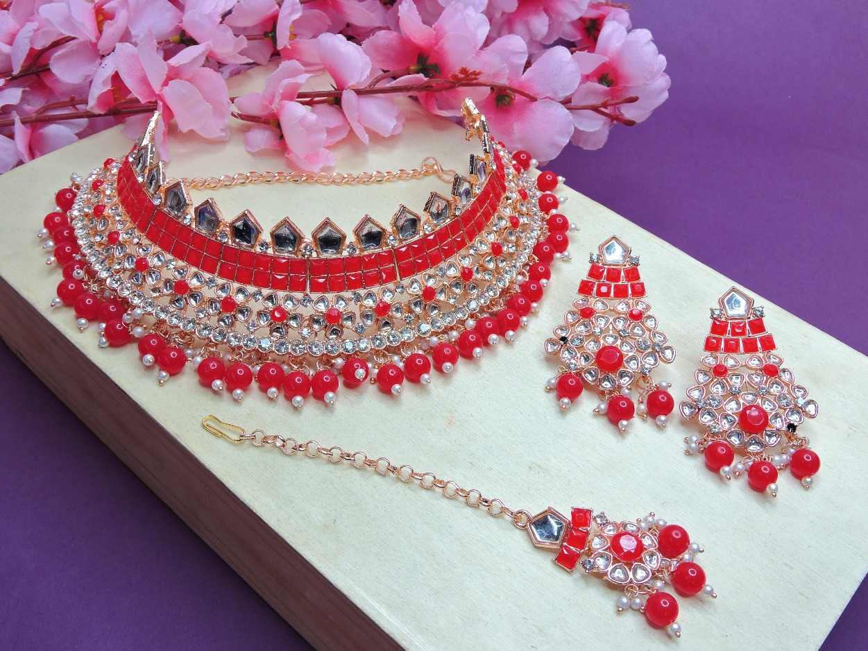 Product Details: 1 Necklace::1 Pair of Earring::1 Maang Tikka