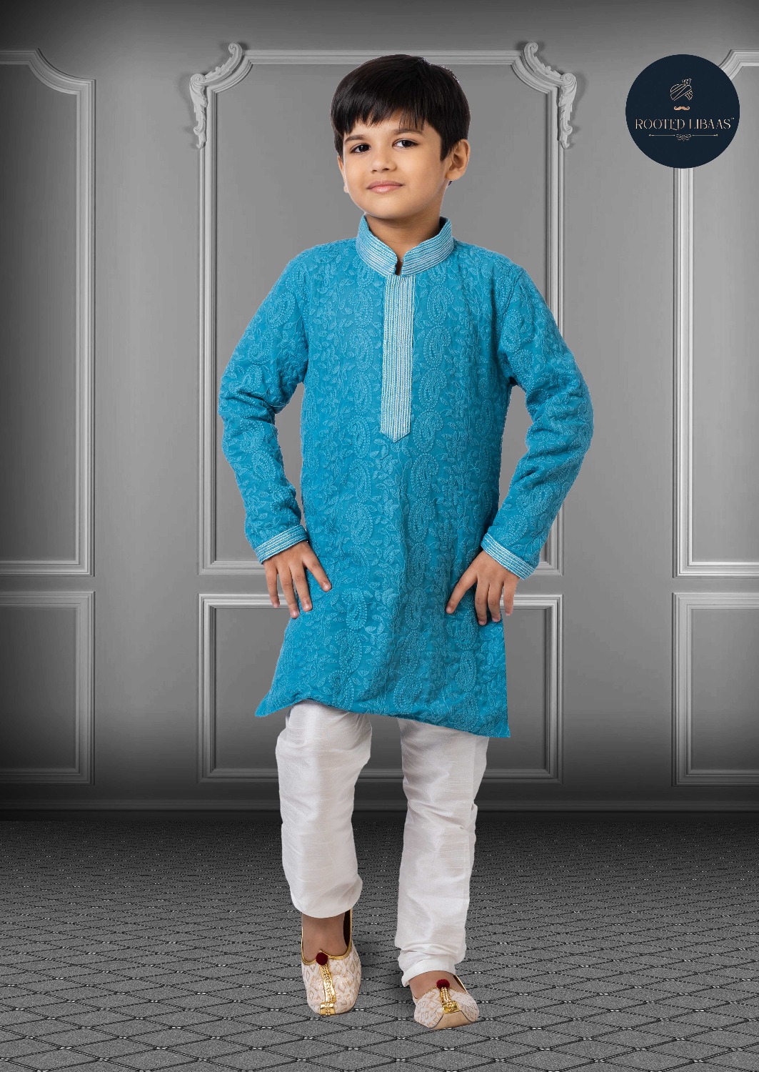 Shapely Georgette Embroidered Blue Kurta Pajama