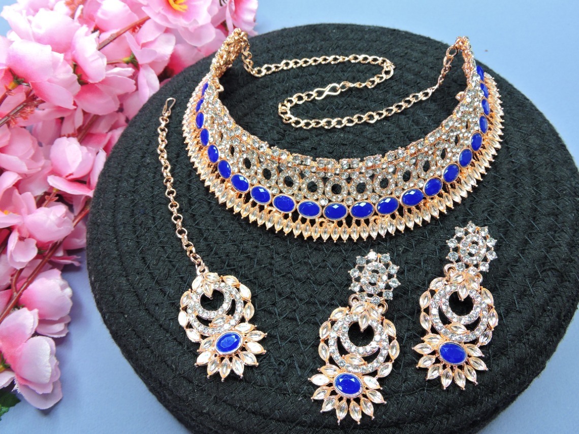 Product Details: 1 Necklace::1 Pair of Earring::1 Maang Tikka