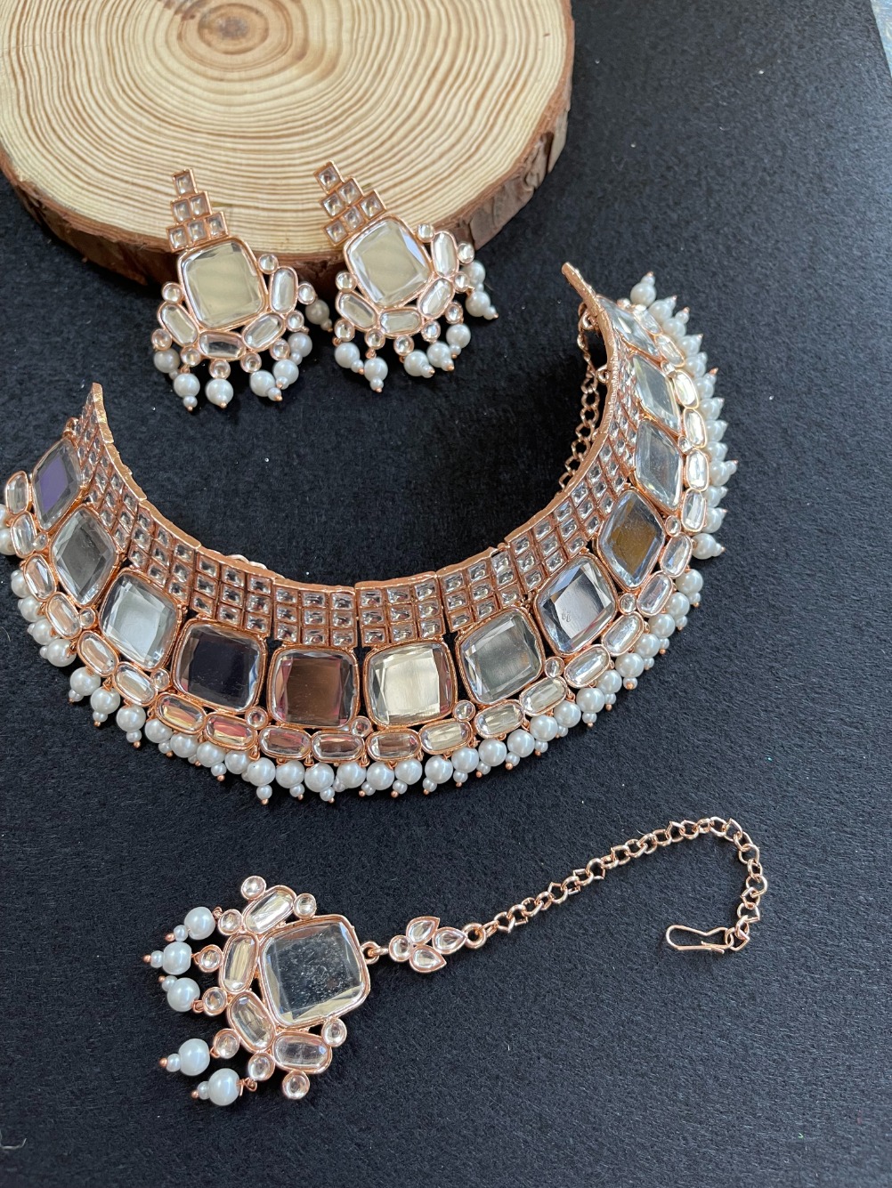Product Details: 1 Necklace::1 Pair of Earring::1 Maang Tikka