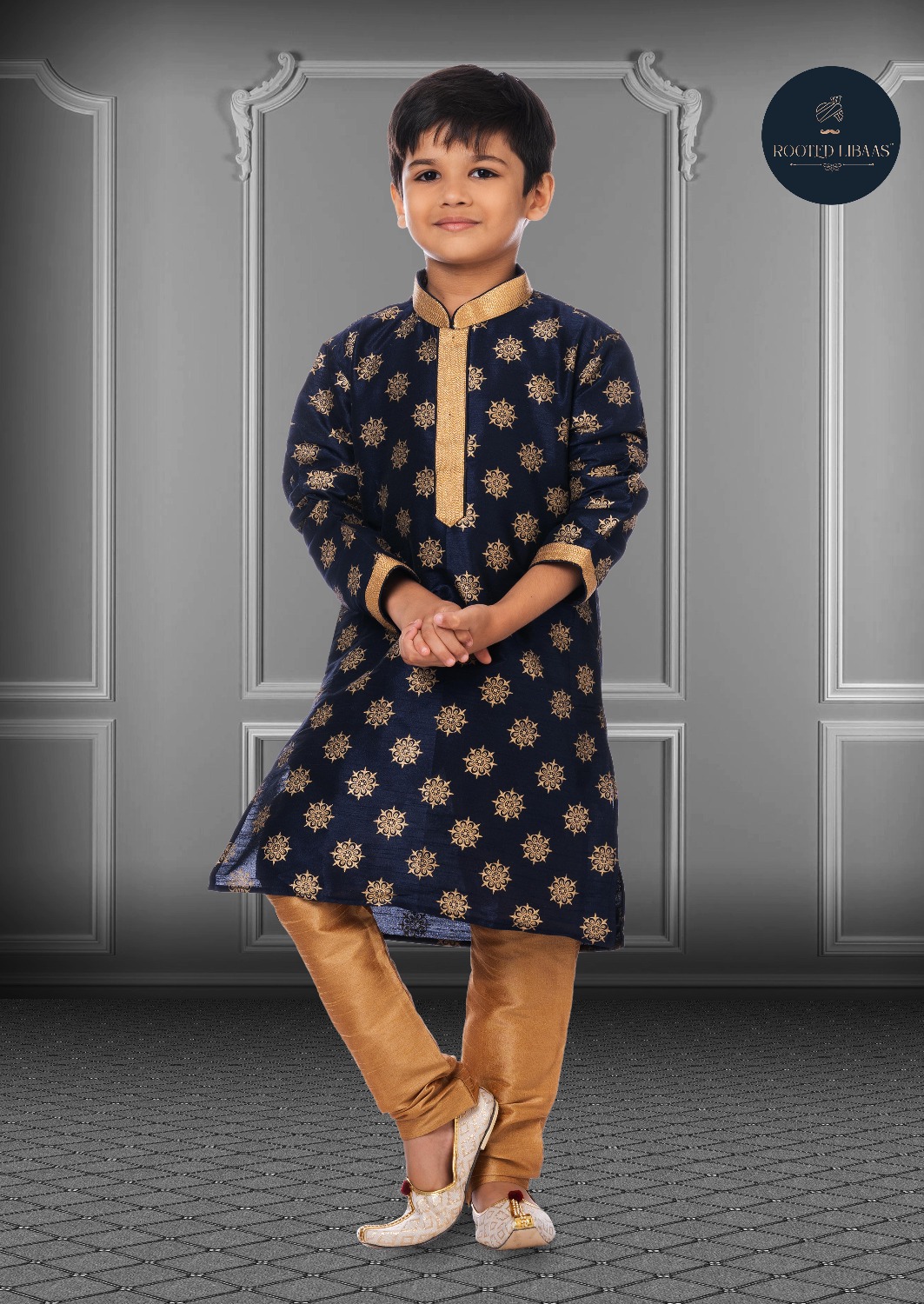 Splendid Printed Dhupion Silk Navy Blue Kurta Pajama