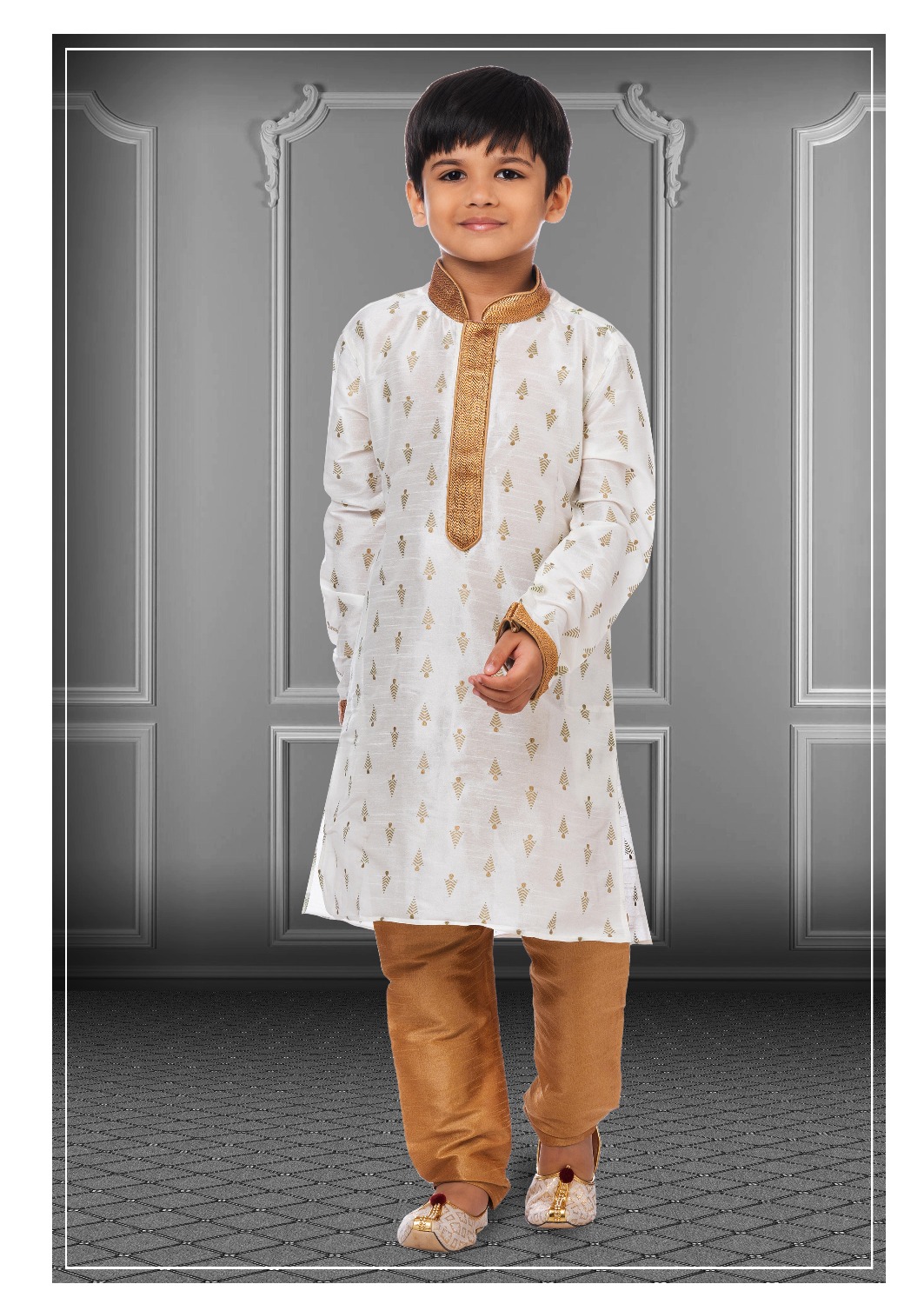 Splendid Printed Dhupion Silk White Kurta Pajama