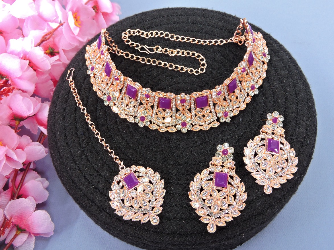 Product Details: 1 Necklace::1 Pair of Earring::1 Maang Tikka