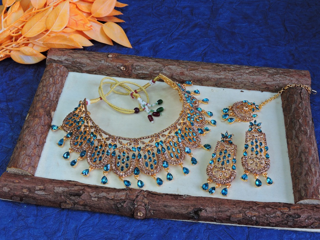 Product Details: 1 Necklace::1 Pair of Earring::1 Maang Tikka