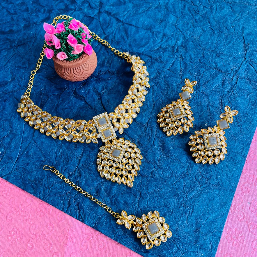 Product Details: 1 Necklace::1 Pair of Earring::1 Maang Tikka