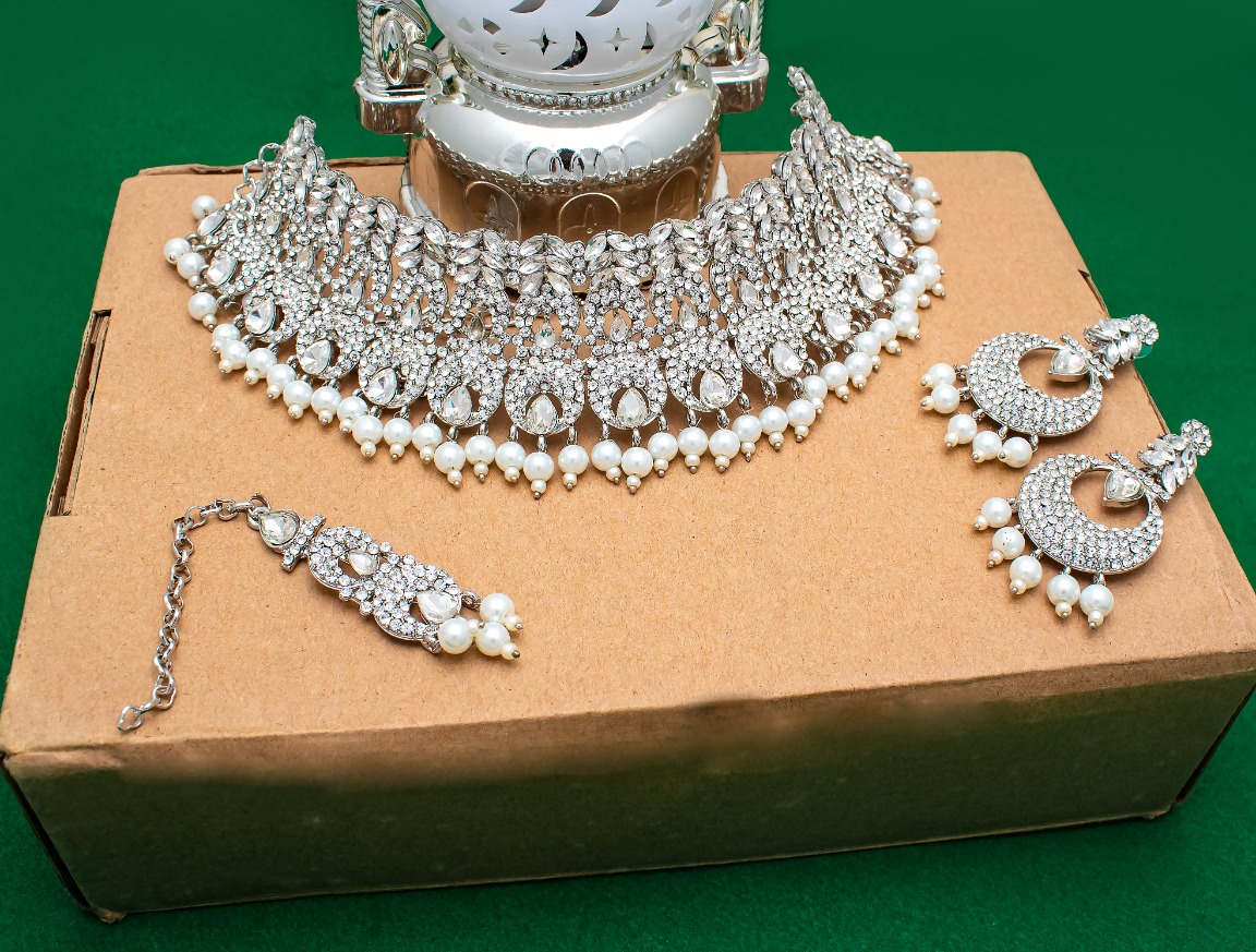 Product Details: 1 Necklace::1 Pair of Earring::1 Maang Tikka