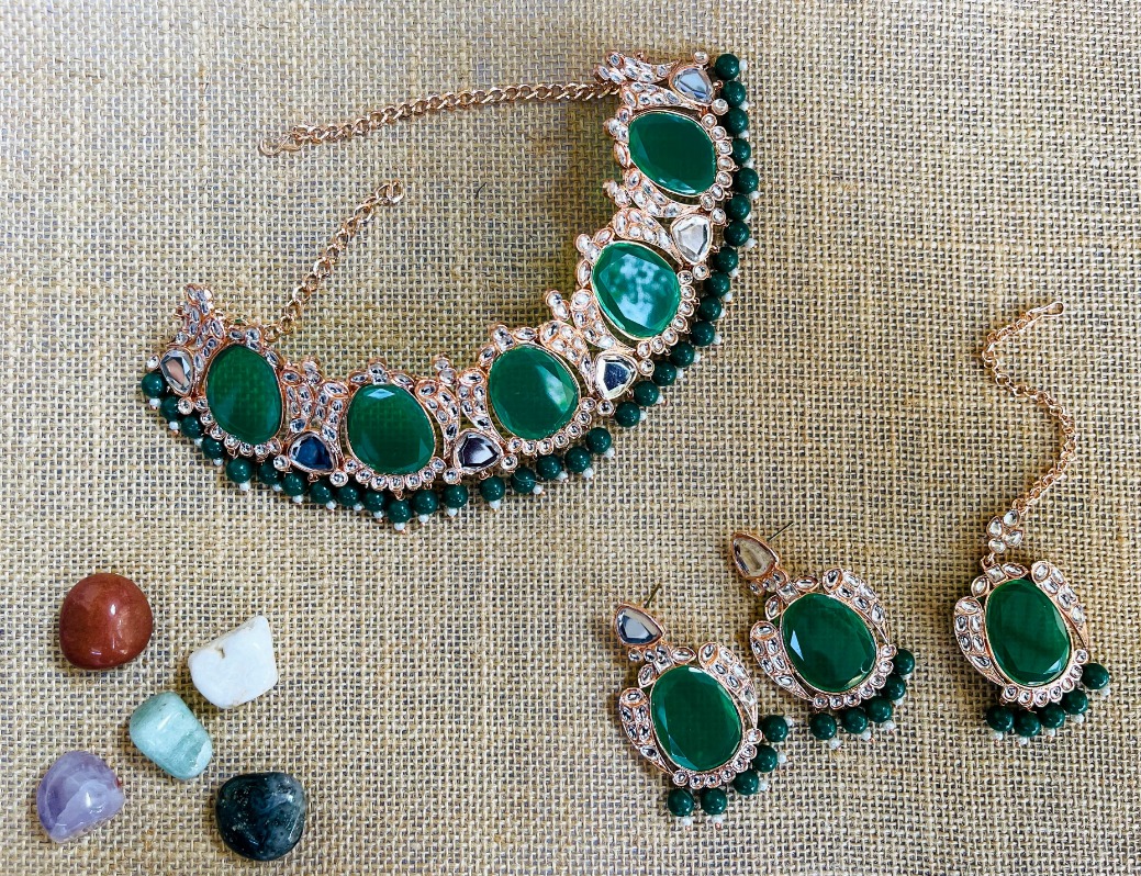 Product Details: 1 Necklace::1 Pair of Earring::1 Maang Tikka