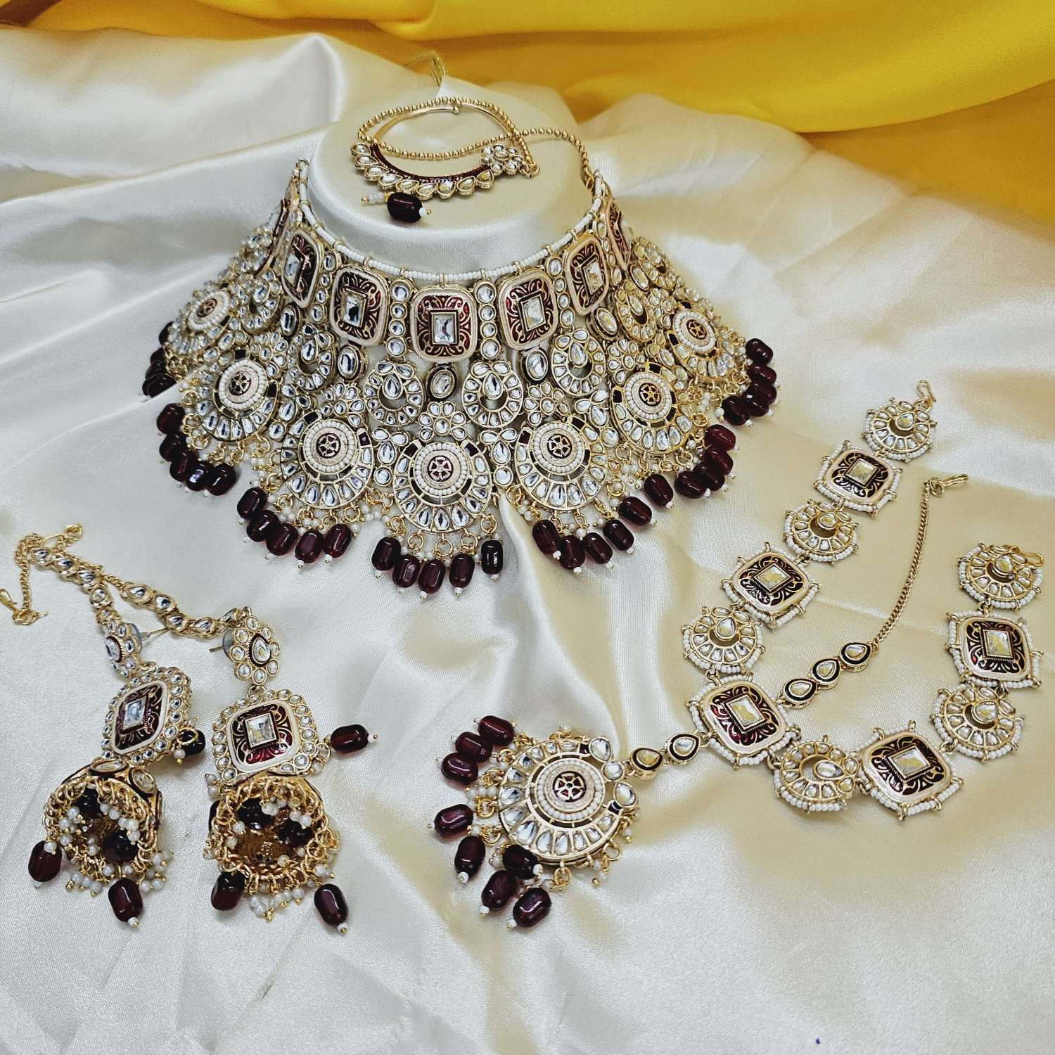 Details: 1 Necklace, 1 Pair Earrings, 1 Nose Ring, 1 Mang Patti