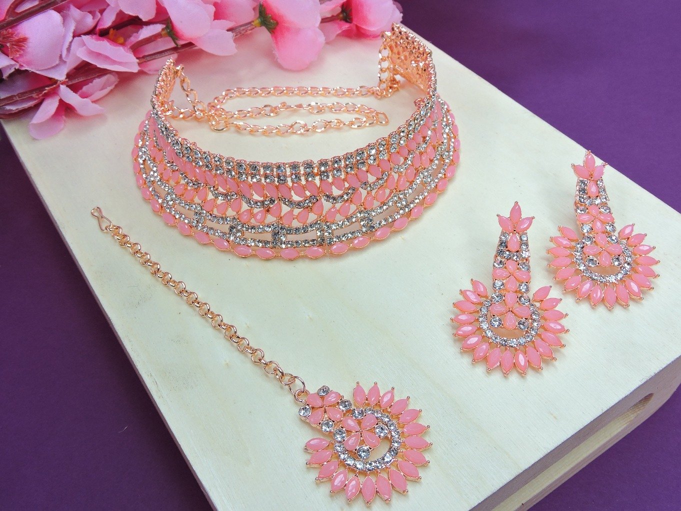 Product Details: 1 Necklace::1 Pair of Earring::1 Maang Tikka