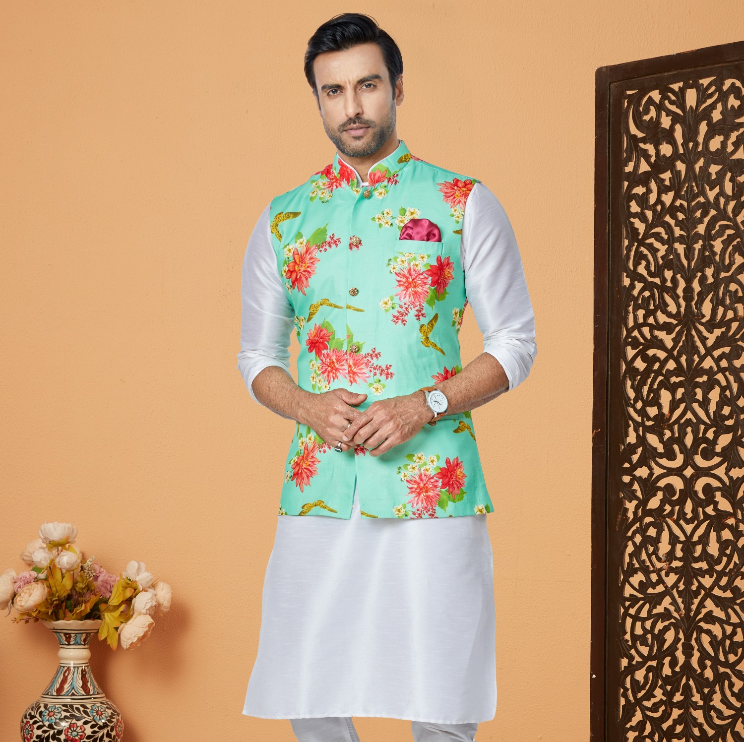 Superb Digital Print Cotton Mint Readymade Nehru Jacket