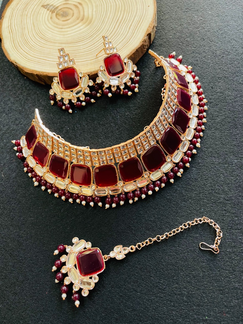 Product Details: 1 Necklace::1 Pair of Earring::1 Maang Tikka