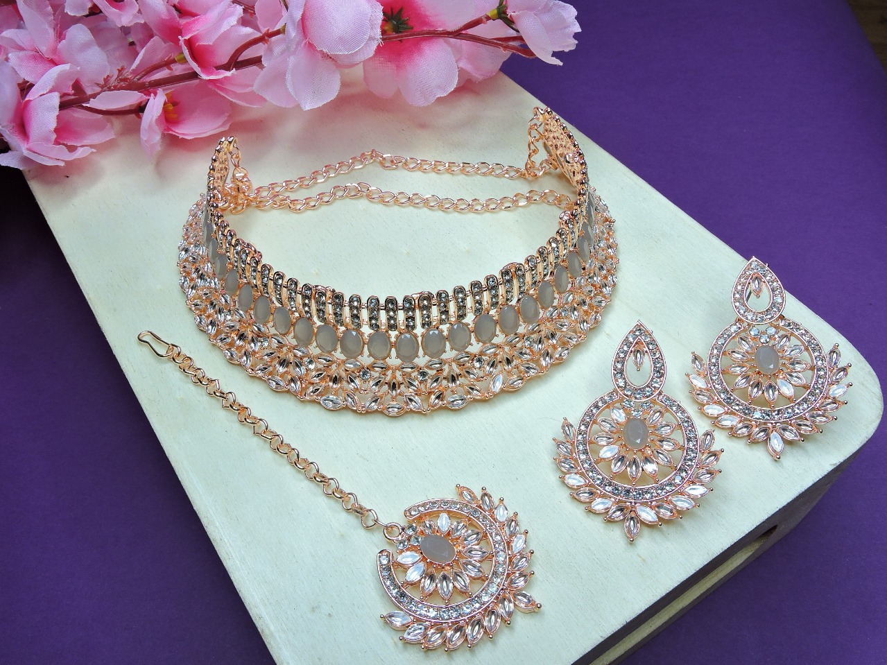 Product Details: 1 Necklace::1 Pair of Earring::1 Maang Tikka