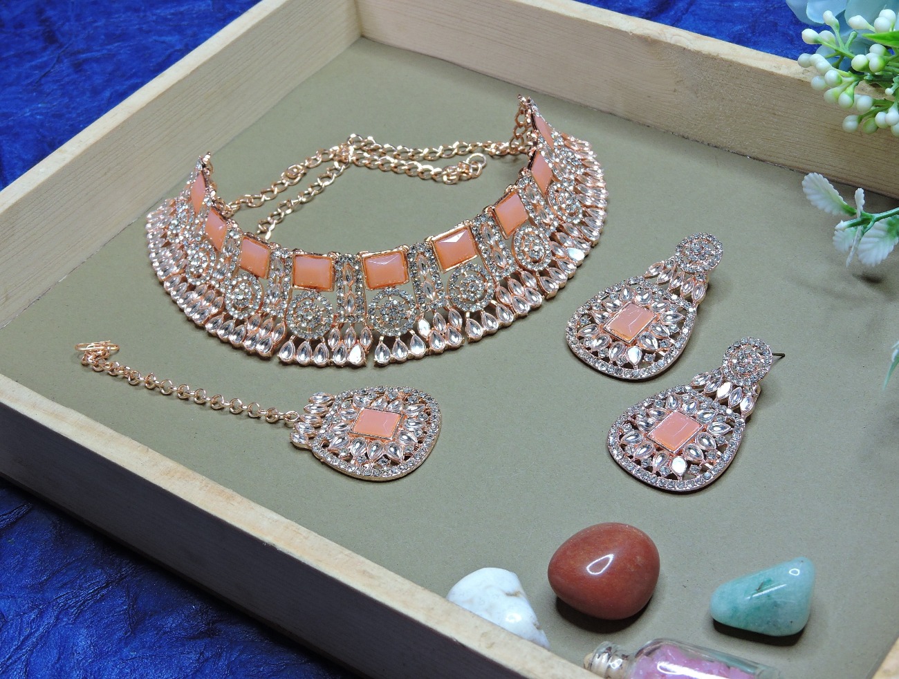 Product Details: 1 Necklace::1 Pair of Earring::1 Maang Tikka
