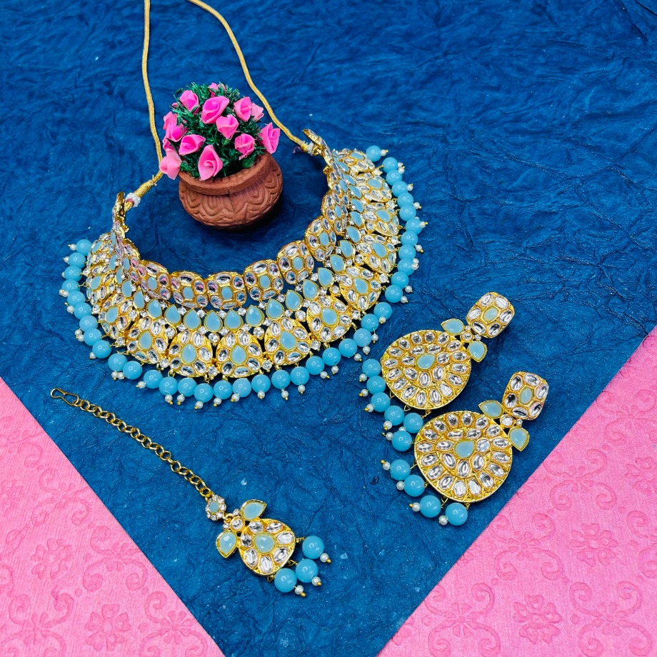 Product Details: 1 Necklace::1 Pair of Earring::1 Maang Tikka