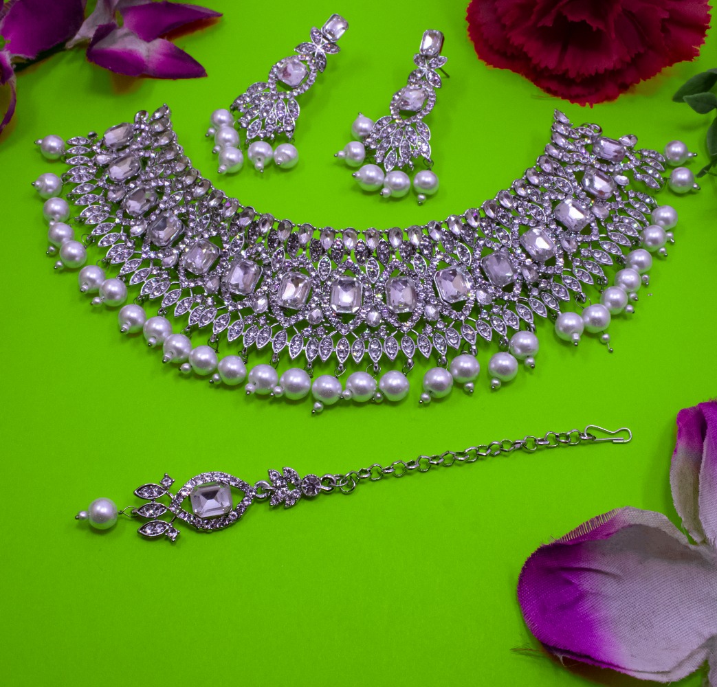 Product Details: 1 Necklace::1 Pair of Earring::1 Maang Tikka