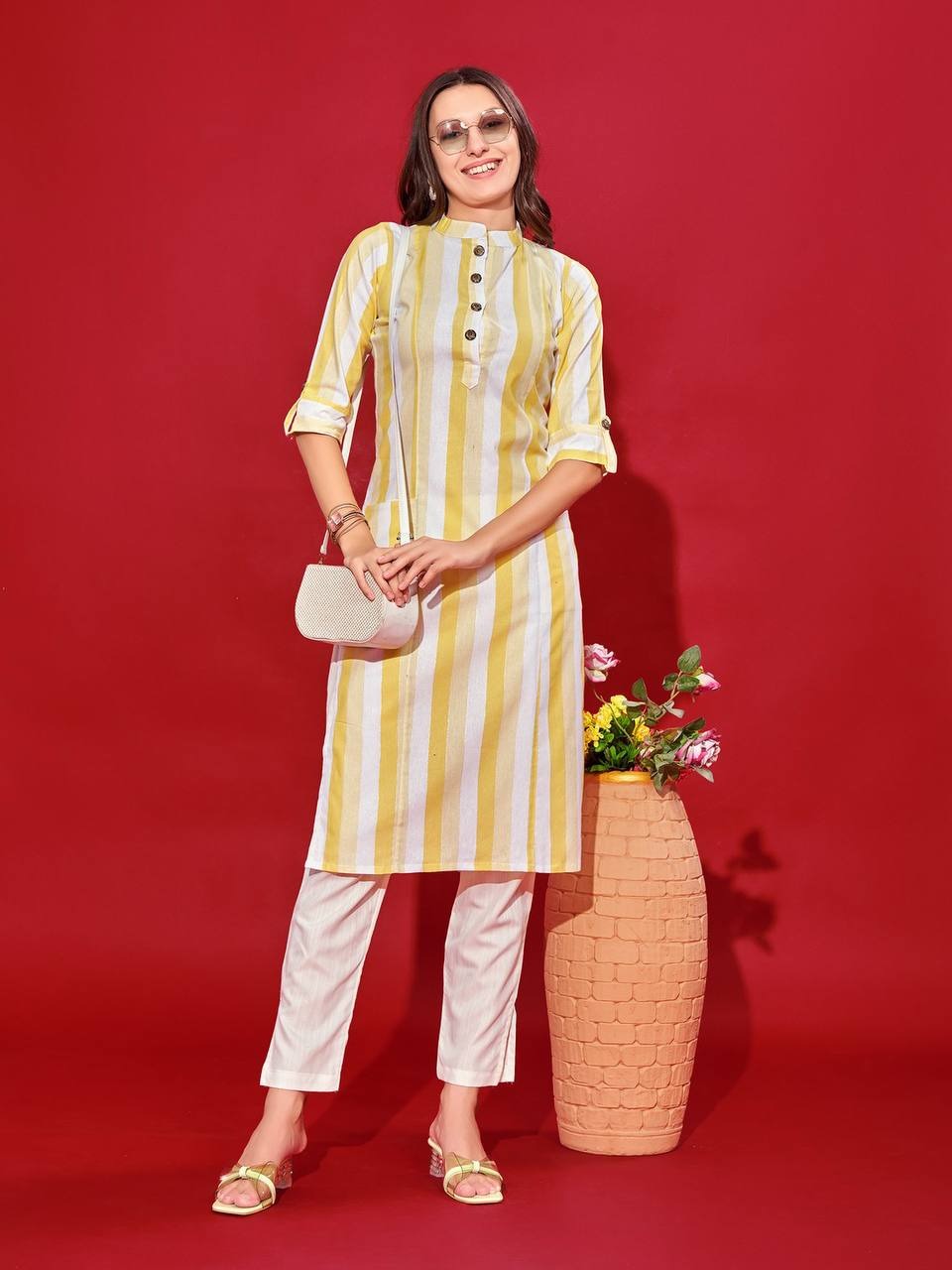 Wonderful Heavy Cotton Yellow Readymade Kurti